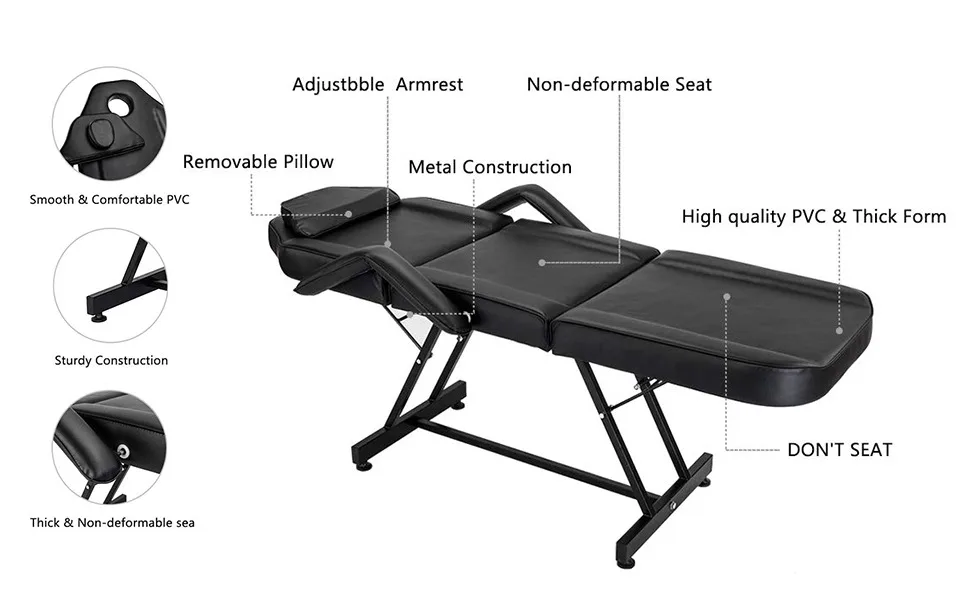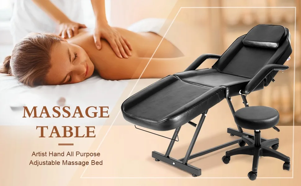 - Adjustable massage salon table is perfect for massages, facials, eyebrow waxing or threading, tattoos and other salon needs.
